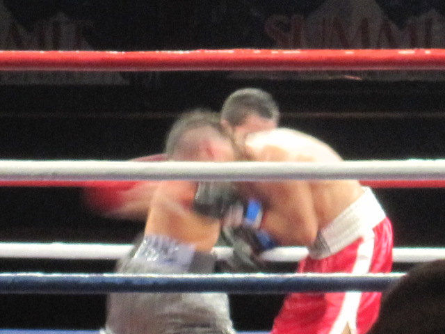 21歳のホープが32歳の老獪なボクサーに完封される波乱があり、場内がだんだんヒートアップ